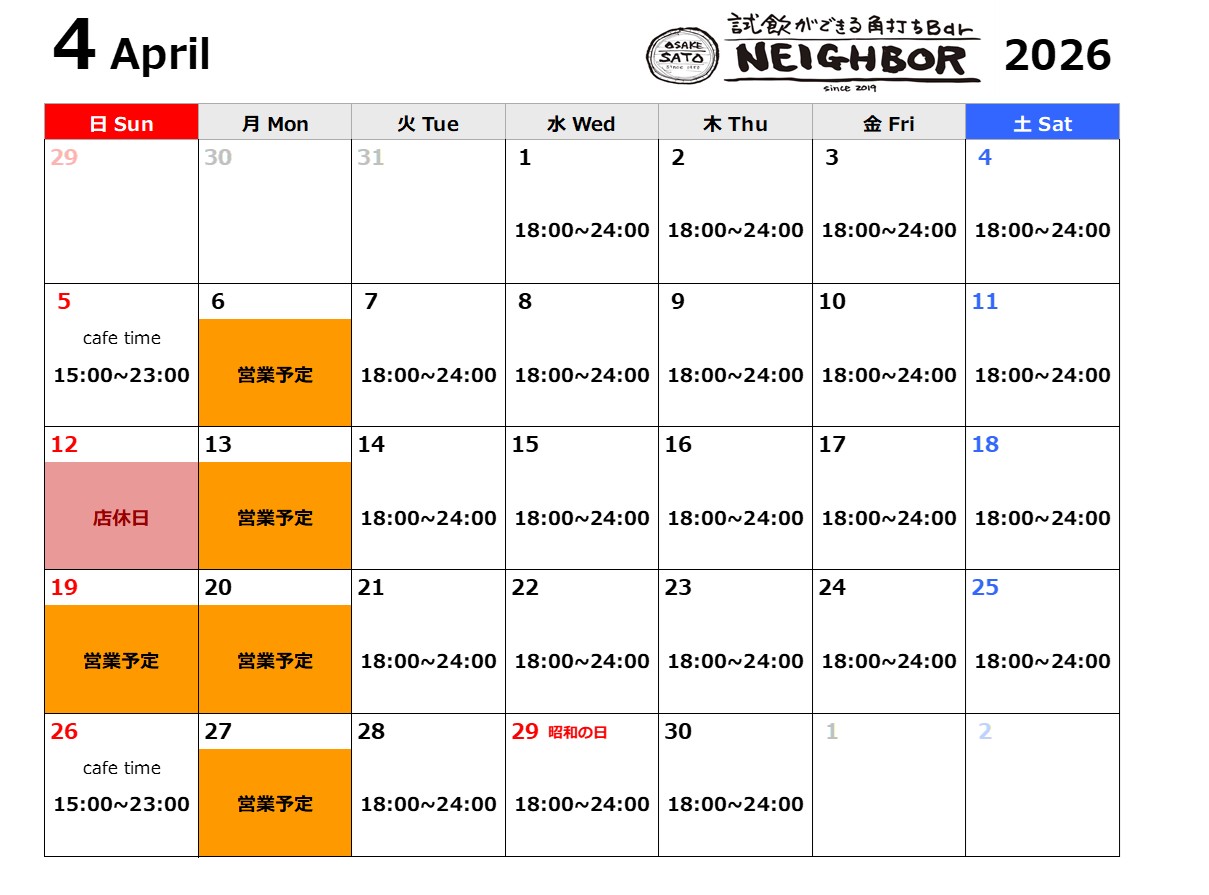 店休日:4月12日(日)