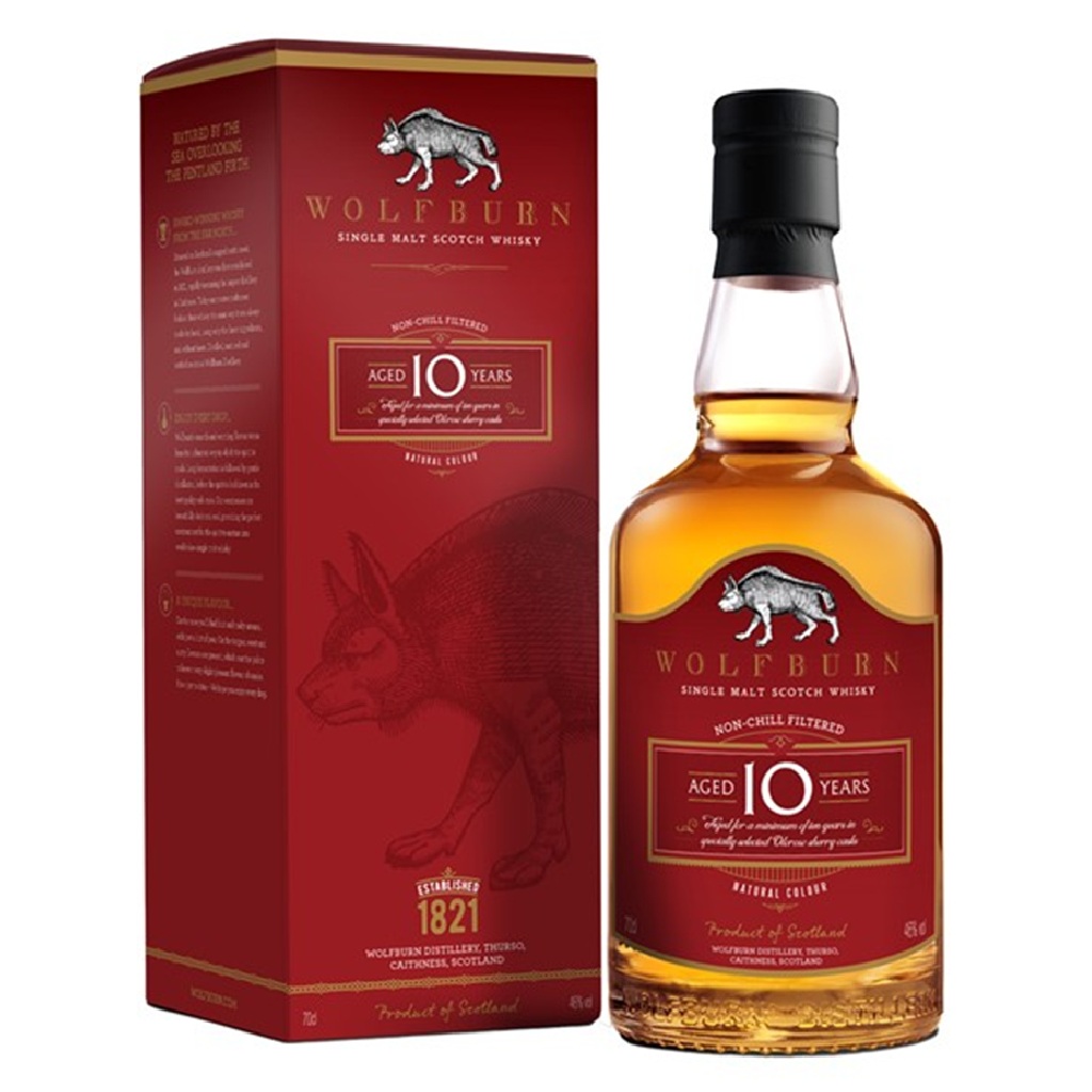 ウルフバーン蒸溜所のフラッグシップ的存在となる10年熟成。フルーティな甘みとモルトのコク、やわらかなスパイスが調和した、クリーンでバランスの良い味わいが特徴です。
